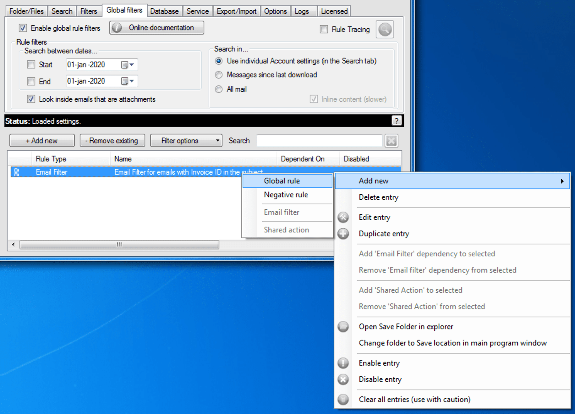 • Mail Attachment Downloader PRO Client